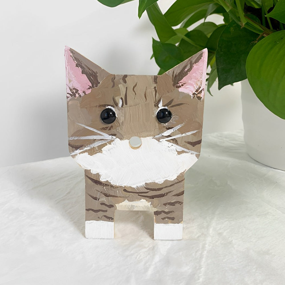 Portaocchiali in Legno Cartone Animato Gatto Grigio